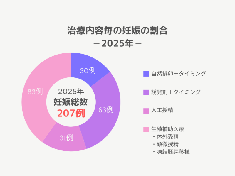 また、タイミング治療で妊娠が増えたため、人工授精の妊娠数も減少したと考えられます。